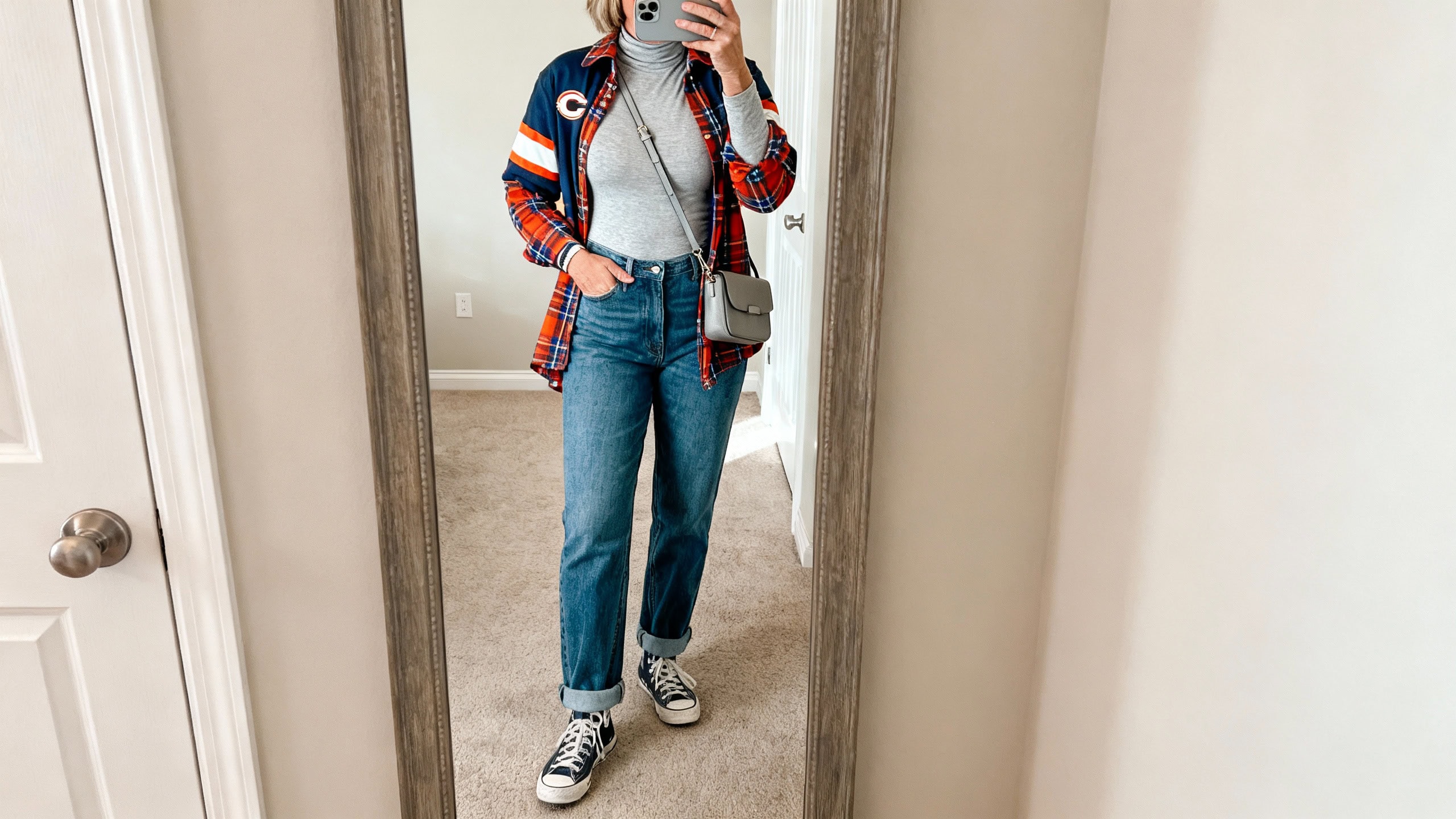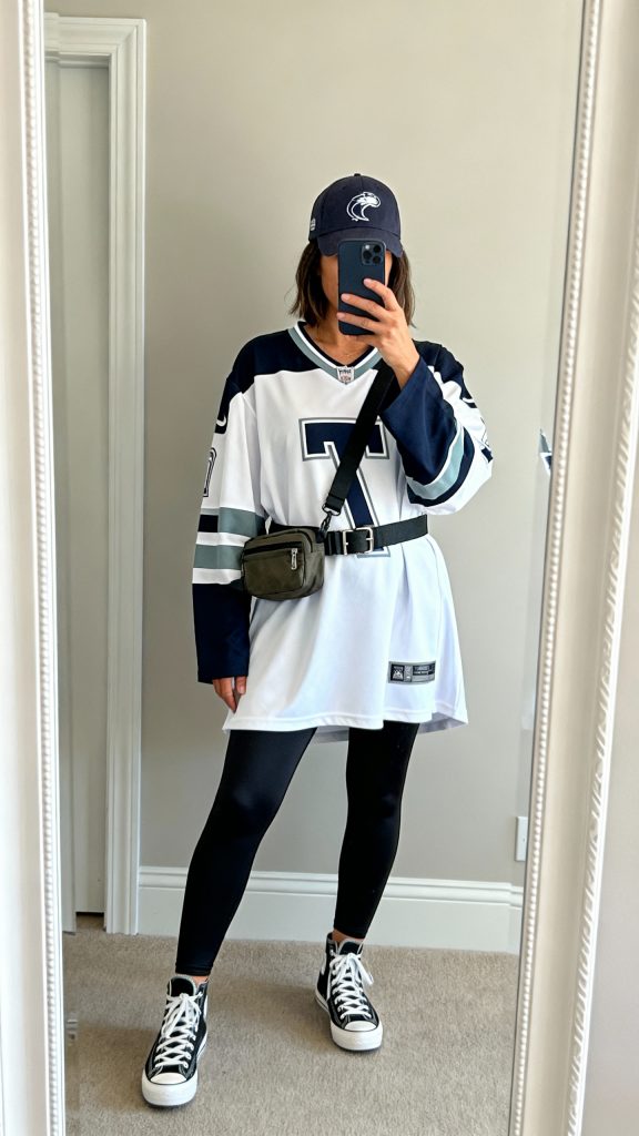 - Stick to one statement piece (jersey, sweatshirt, or jacket).
