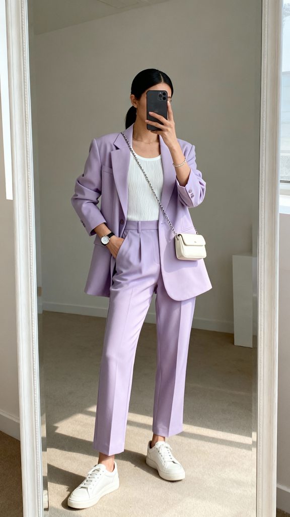 3. The Pastel Power Suit With Sneakers That Owns Every Photo