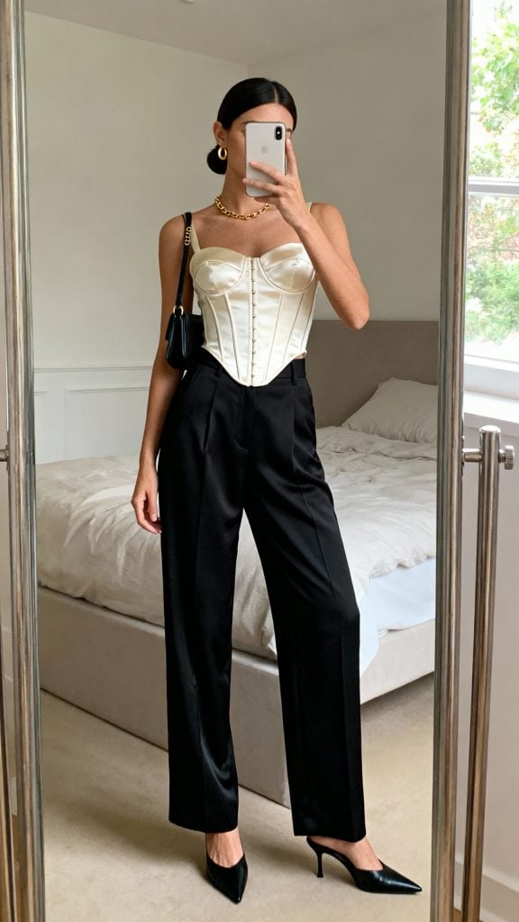 6. The Corset Top + Wide-Leg Trousers Combo That Feels Elevated But Easy