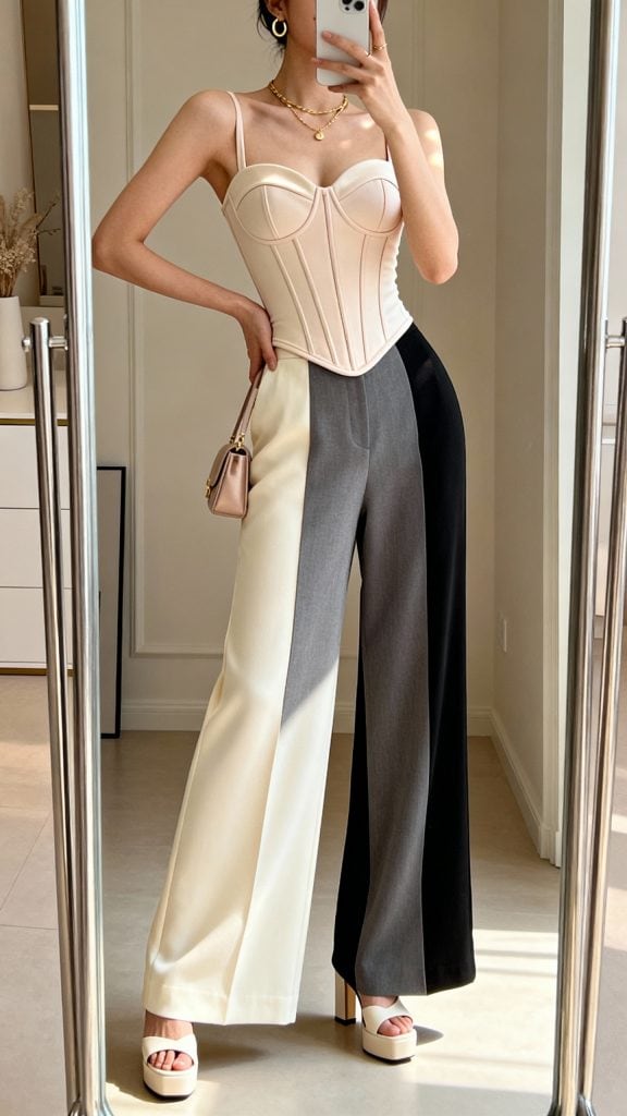 3. Soft-Girl Corset + Wide-Leg Trousers With That Modern Romance