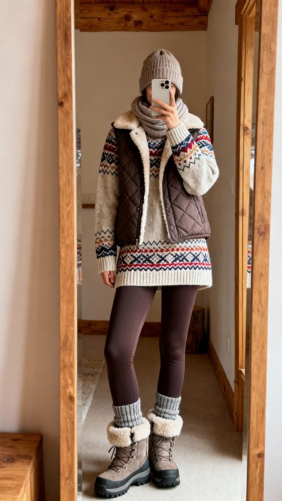 4. Après-Ski Energy: Fair Isle Knit + Wool Socks + Sherpa Boots